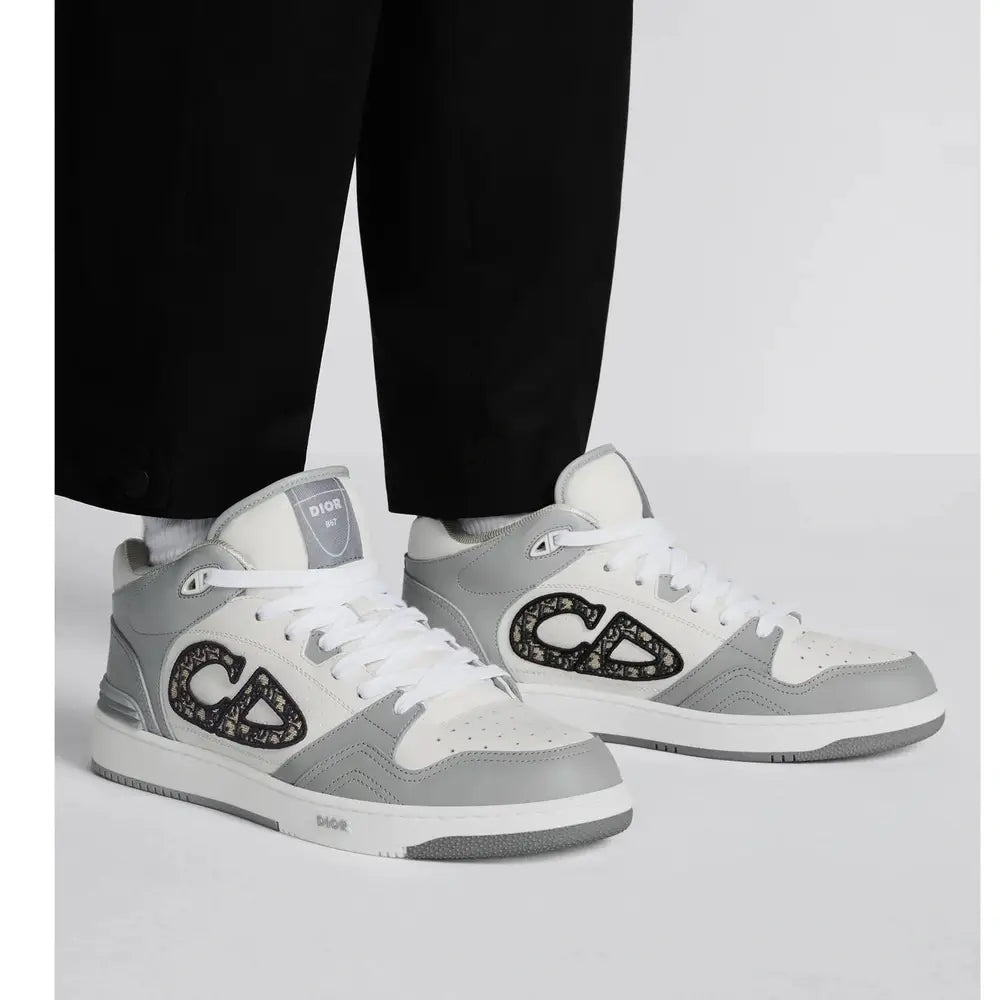 B57 MID-TOP SNEAKER B57 MID-TOP SNEAKER CDs Gray And White Smooth Calfskin With Beige And Black Dior Oblique Jacquard